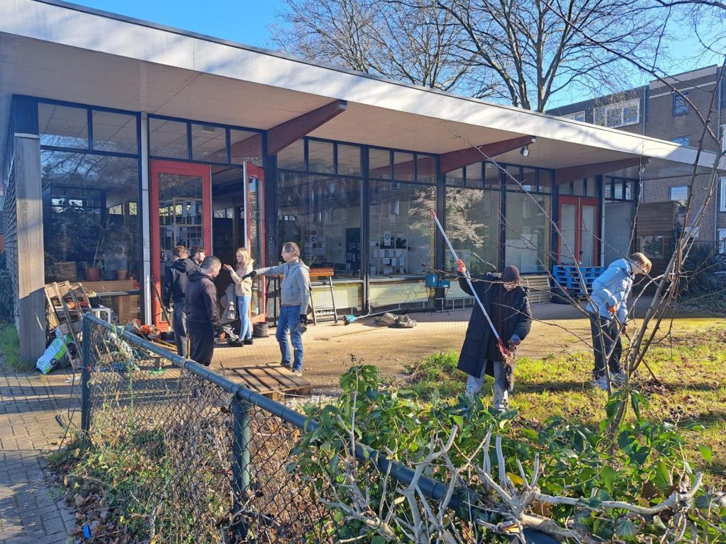 NLdoet is dé landelijke vrijwilligersdag en wordt georganiseerd door het Oranje Fonds. Ook in ’t Zand zijn we op deze dag hard bezig geweest met het opknappen van onze buurt. Op vrijdagochtend hielpen studenten van het Koning Willem I College mee de tuin van gemeenschapshuis OMNII te snoeien. Vrijdagmiddag hebben medewerkers van Arcadis geholpen twee jeu-de-boulesbanen op te knappen.