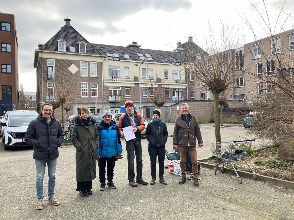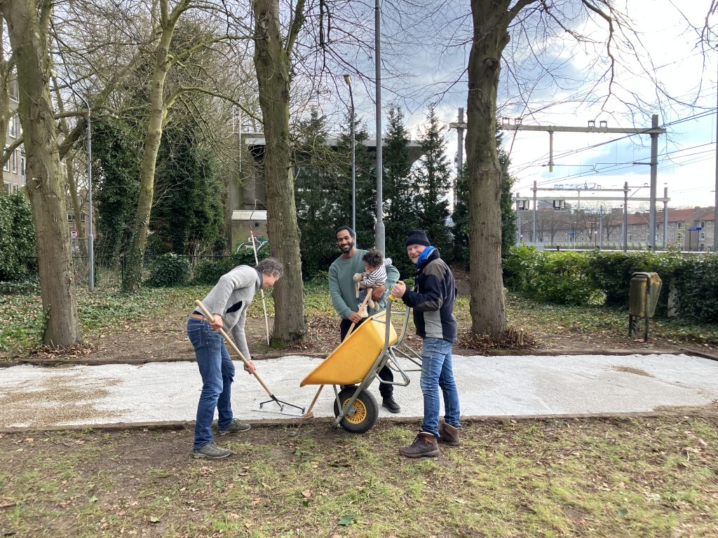 Na de lunch was er een rondleiding langs alle projecten waar die dag aan gewerkt was, om te zien wat er allemaal bereikt was tijdens NLdoet. In totaal zijn er een dozijn boomspiegels opgeknapt, tientallen vierkante meters groen onderhouden en vele kilo’s groenafval en 1m3 gravel verwerkt.