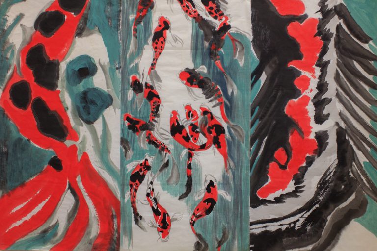 The Pleasures of Fish | 2024 137cm x 204cm | inkt, aquarel, water en penseel op moerbeiboompapier