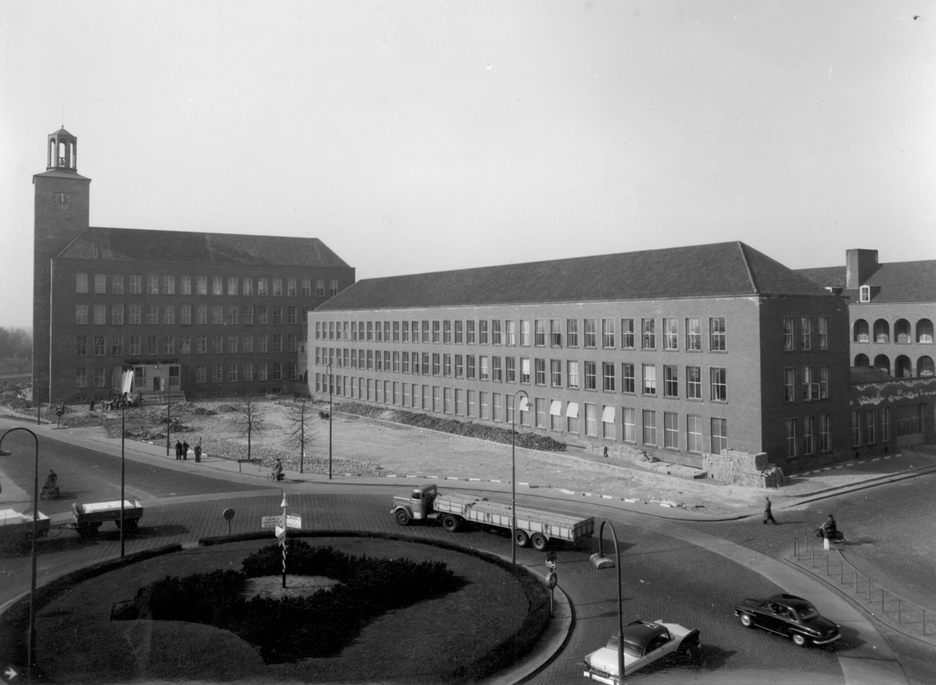 Het nieuwe kantoor werd gebouwd tussen 1952 en 1956 op de plek waar vroeger het buurtje Lombok was gevestigd. Het YouTube kanaal van Bob van Boekel bevat een mooie video over Lombok en de bouw van het nieuwe kantoor met veel mooie oude foto’s. Je kunt de video hieronder advertentie-vrij bekijken.