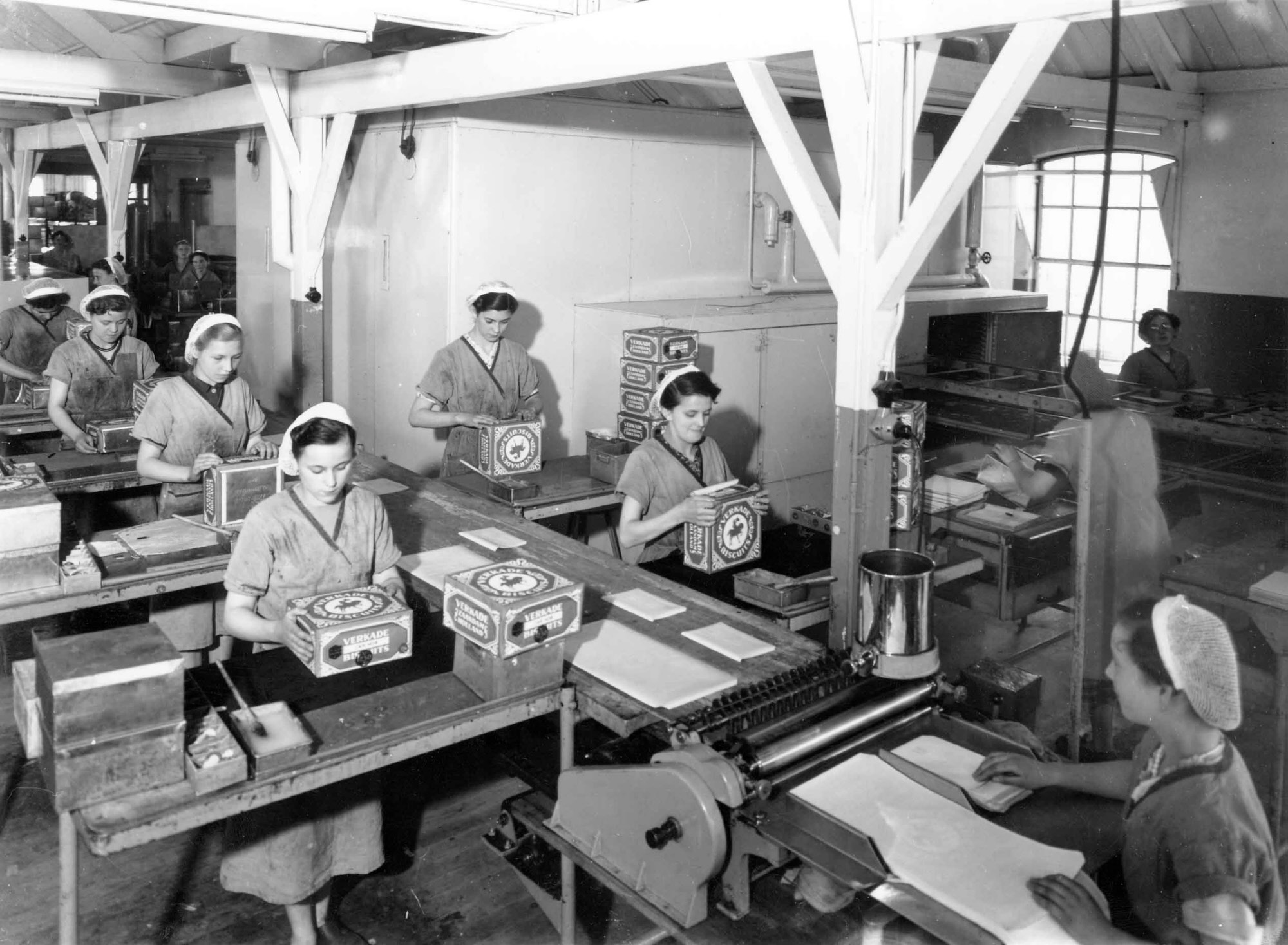 Deze foto is gemaakt op 8 juni 1951 op de inpakafdeling van de Verkadefabriek. Ook hier zien we veel jonge vrouwen, net als op de eerste foto. In die tijd gingen veel Bossche meisjes na de huishoudschool werken bij deze fabriek. Daar komt de bijnaam “de Meisjes van Verkade” vandaan.