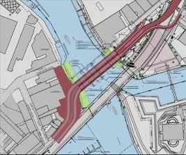Begin 2026 start de bouw van een nieuwe, lagere Diezebrug. Die komt 50 meter naar het westen te liggen, richting de Tramkade, zoals op het plaatje hierboven te zien is. De oude brug wordt afgebroken. Dat gebeurt pas als de nieuwe brug klaar is.