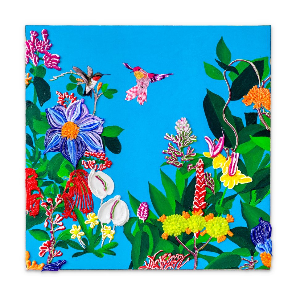 Blue for You | 2022 60cm x 60cm | acryl, gekleurde siliconen en borduurwerk op bedrukte stof